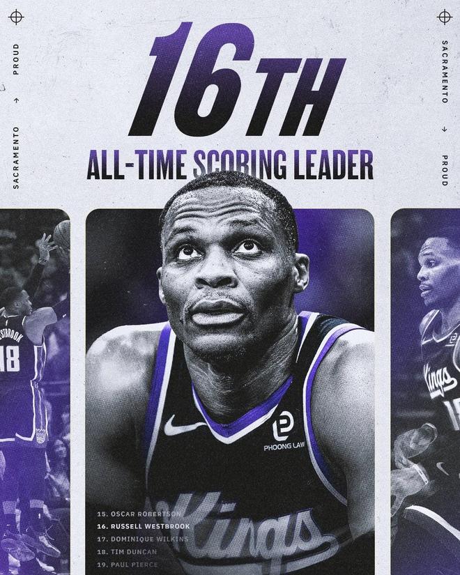 里程碑,威斯布魯克生涯總得分超越威爾金斯上升到歷史第十六