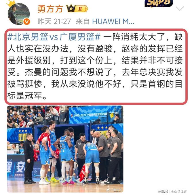 媒體人勇方方社媒發(fā)文點評道:“一陣消耗太大了,缺人也實在沒辦法,沒有盈駿,的發(fā)揮已經是外援級別,打到這個份上,結果并非不可接受。杰曼的問題我不想說了,去年總決賽我發(fā)被罵挺慘,我從來沒說他不好,只是首鋼的目標是冠軍?!?。