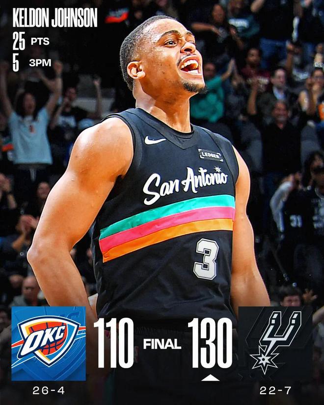 凱爾登25分 馬刺雙殺雷霆送其賽季第4敗