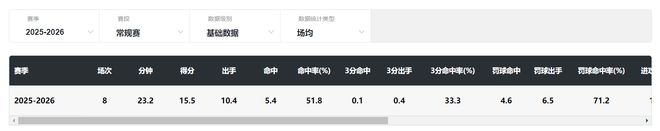 本賽季上海的9場(chǎng)比賽她出戰(zhàn)了8場(chǎng)其中7場(chǎng)先發(fā),場(chǎng)均23分鐘,拿到15.5分5.1籃板1.1助攻0.8搶斷0.1蓋帽,命中率51.8%,三分命中率33.3%,她目前已經(jīng)坐穩(wěn)了上海女籃先發(fā)的席位,目前上海隊(duì)4勝5負(fù)排在聯(lián)盟第六不算差。