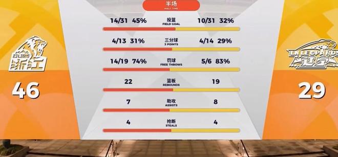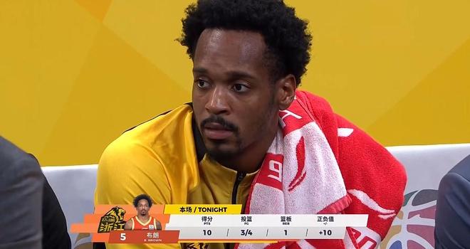 布朗半場轟下17分,正負值+18,廣廈遼寧半場各進4記三分,但罰球是廣廈19-6遼寧!