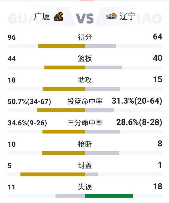 比賽的懸念其實(shí)在第二節(jié)就已經(jīng)結(jié)束了,在廣廈持續(xù)不斷的夾擊持球人防守下,遼寧半場(chǎng)只拿到29分,第三節(jié)雖然遼寧也做出了一定的反撲,但最多也只能趁著廣廈第三節(jié)開局出現(xiàn)松懈,將分差縮小來到9分,當(dāng)?shù)谌?jié)布朗、孫銘徽再次發(fā)力后,遼寧很快就又被打回原形,單節(jié)一度讓廣廈拉開到27分,更加說明廣廈只要出全力,遼寧就會(huì)輸?shù)酶鼞K。