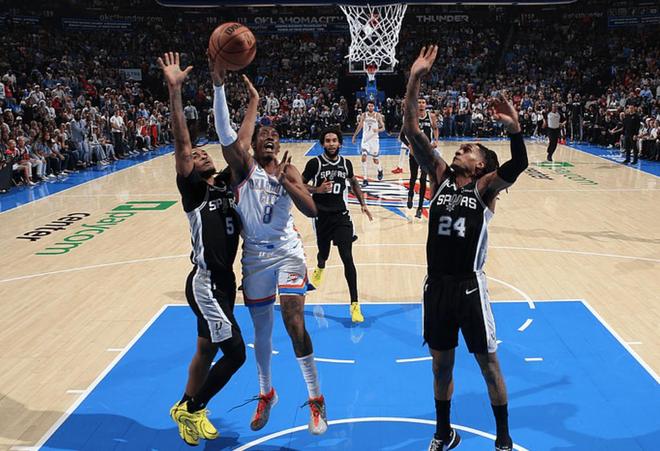 ??怂故指谢馃?,多點開花,凱爾登約翰遜也連續(xù)蜻蜓點水補籃得手,第一節(jié)比賽結(jié)束,馬刺41-36領(lǐng)先雷霆5分。次節(jié)比賽開始,哈珀的蘭花指拋射幫助馬刺先下一城,科內(nèi)特禁區(qū)吃餅暴扣技驚四座,維金斯面對防守靈動變向過人,擦板得到兩分,??怂菇柚谧o(hù),無視防守的中距離跳投同樣也有,文班亞馬對抗后的重錘暴扣點燃全場,切特禁區(qū)高舉高打,轉(zhuǎn)身上籃拿下兩分,杰威突襲籃下制造殺傷,站上罰球線兩罰都有,卡斯?fàn)柼ぱo痕搶到進(jìn)攻籃板,飛身補籃也穩(wěn)穩(wěn)命中。馬刺在第二節(jié)不給任何機(jī)會,繼續(xù)擴(kuò)大領(lǐng)先優(yōu)勢到10分左右,半場比賽戰(zhàn)罷,馬刺69-60領(lǐng)先雷霆9分。