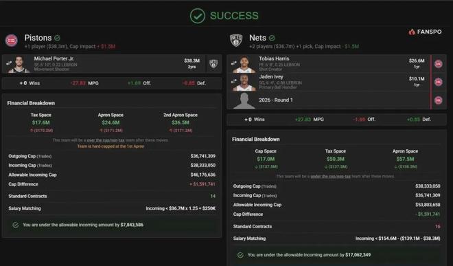 美媒建議活塞可以就小波特,向籃網(wǎng)報價哈里斯(2663萬美元,合同年)+艾維(1011萬美元,合同年)+一個選秀權,也許便能大功告成。