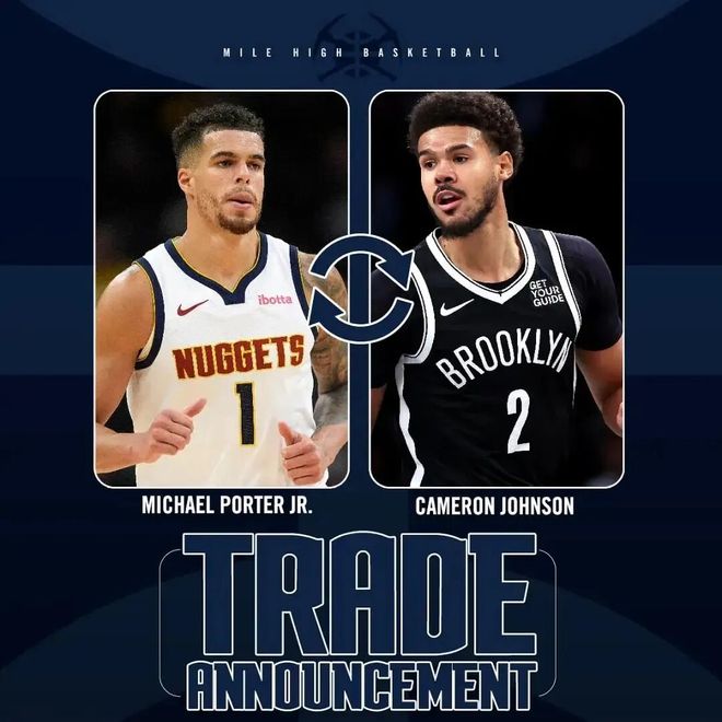 今夏休賽期,掘金將小波特和一個(gè)32年無(wú)保護(hù)首輪簽送至籃網(wǎng),換回卡梅倫-約翰遜;本賽季在籃網(wǎng)的小波特,“因禍得?!贝虺錾膸p峰一季,至今場(chǎng)均貢獻(xiàn)25.7分7.3板3.2助,場(chǎng)均以40.1%命中率扔進(jìn)3.7記三分球。